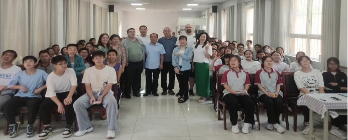 On September 14, 2023, Wang Jun, the secretary of School of Foreign Languages of Northwest University, led Robin Gilbank, a British foreign teacher, and Eli Smith, an American foreign teacher, to visit Gaoxin 16th Junior High School. The purpose of this visit was to give full play to the social benefits of the university's internationalized educational resources, to return to the community, to serve the public, to provide students with cross-cultural exchange experiences and to expand their international horizons.