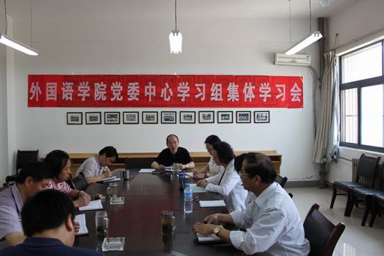 54下午,外国语学院党委中心学习组进行本学期第二次集体学习,专题学习胡锦涛同志在庆祝清华大学建校100周年大会上的重要讲话。我院党委中心学习组全体成员集中学习了胡锦涛同志的重要讲话,并结合我校我院的办学实际进行了讨论。