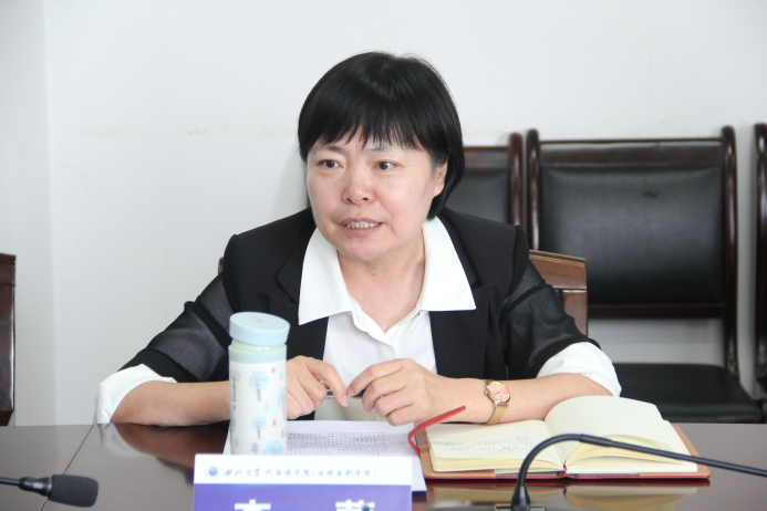座谈会上,教学副院长李蓂就我院评估组织机构的组建、推进工作的展开、试卷管理抽查、教学档案整理与电子化、教学大纲修订审查、学院巡礼推送、典型案例和自评报告的编制等方面,做了详细介绍,对我院自评自建过程中存在的问题进行剖析,对下一步工作计划进行简要汇报,并希望教务处在AI赋能教学改革项目及新文科背景下专业交叉融合的本科育人模式方面给予指导和支持。