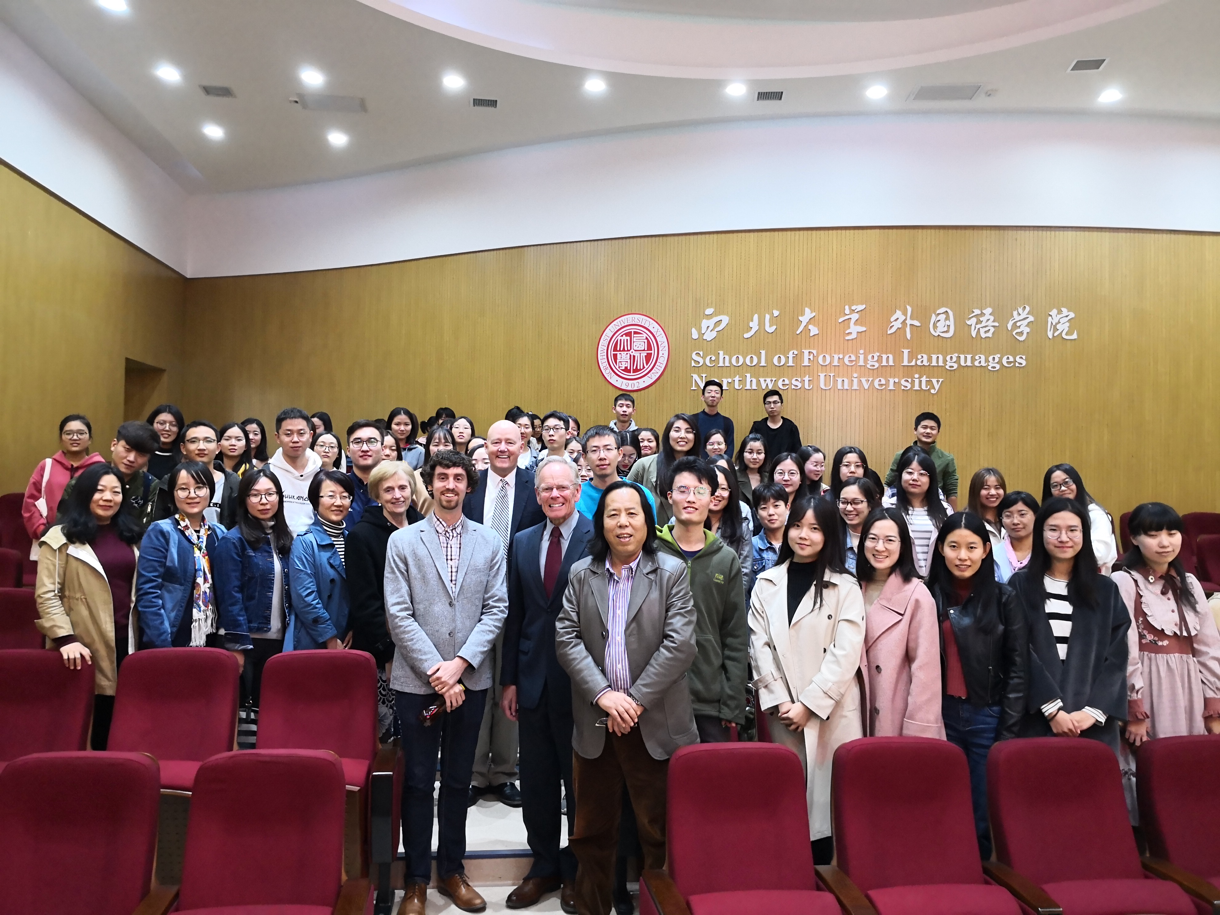 11月2日下午两点,美国教育学学者Claudia Beal(克劳蒂亚·比尔)、美国企业并购及税收法资深律师 Kenneth Hunt(肯尼思·亨特)、美国社会与文化资深学者 David Beal(大卫·比尔)以及美国经济学学者 Mark Mygrant(马克·麦格兰特)应外国语学院邀请来我校作报告,本次报告由外语学院院长胡宗锋教授主持。