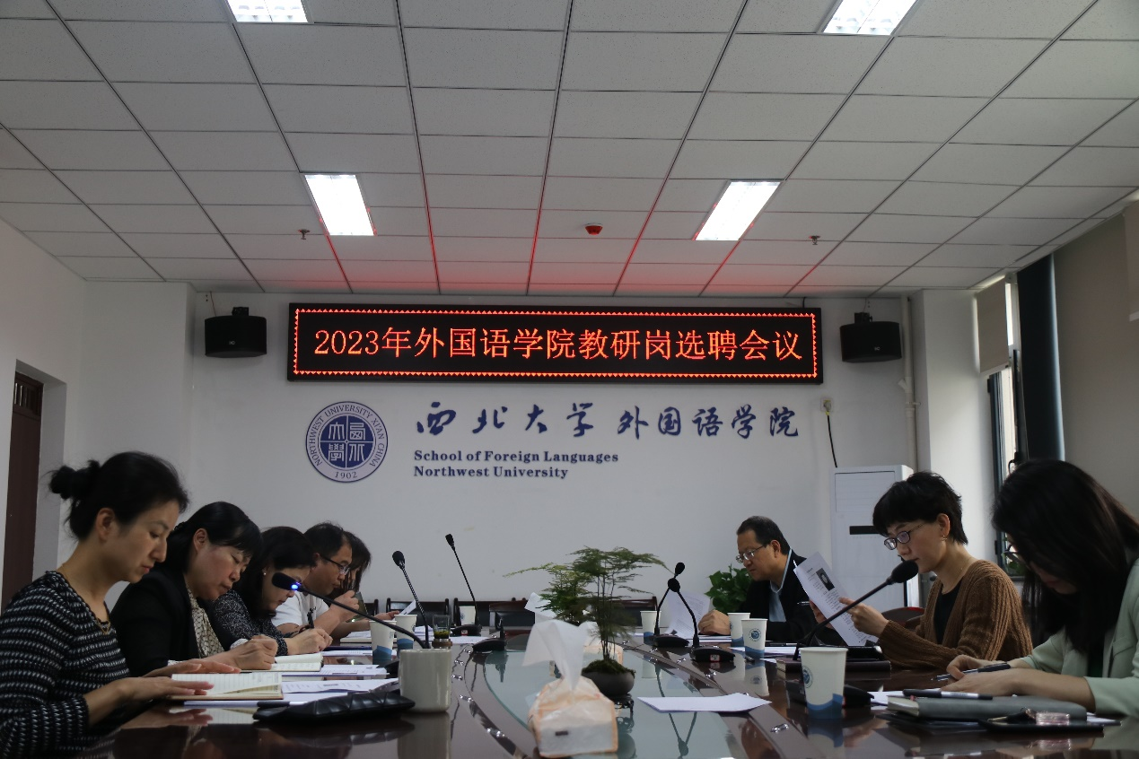 2023年4月20日下午2时,在学院会议室举行了2023年外国语学院教研岗选聘会议。会议由行政副院长杨颖主持,党委书记王军、院长曹若男、教学副院长李蓂、科研副院长苏蕊、英语系主任李铁及院长助理许娜参加了会议。